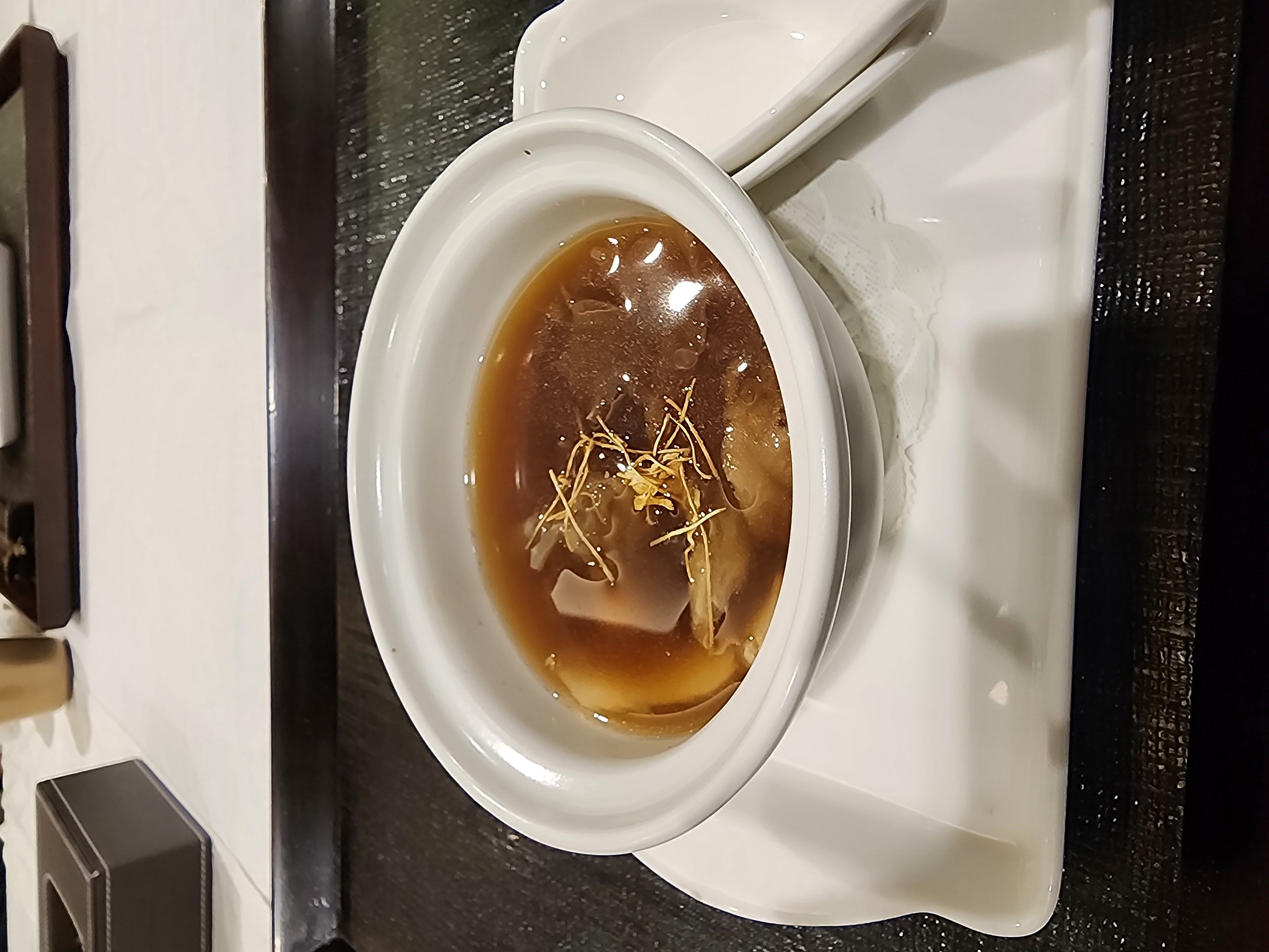 간장 맛이 나고 탕안에 버섯 해파리 고기가 들어있어요ㆍ